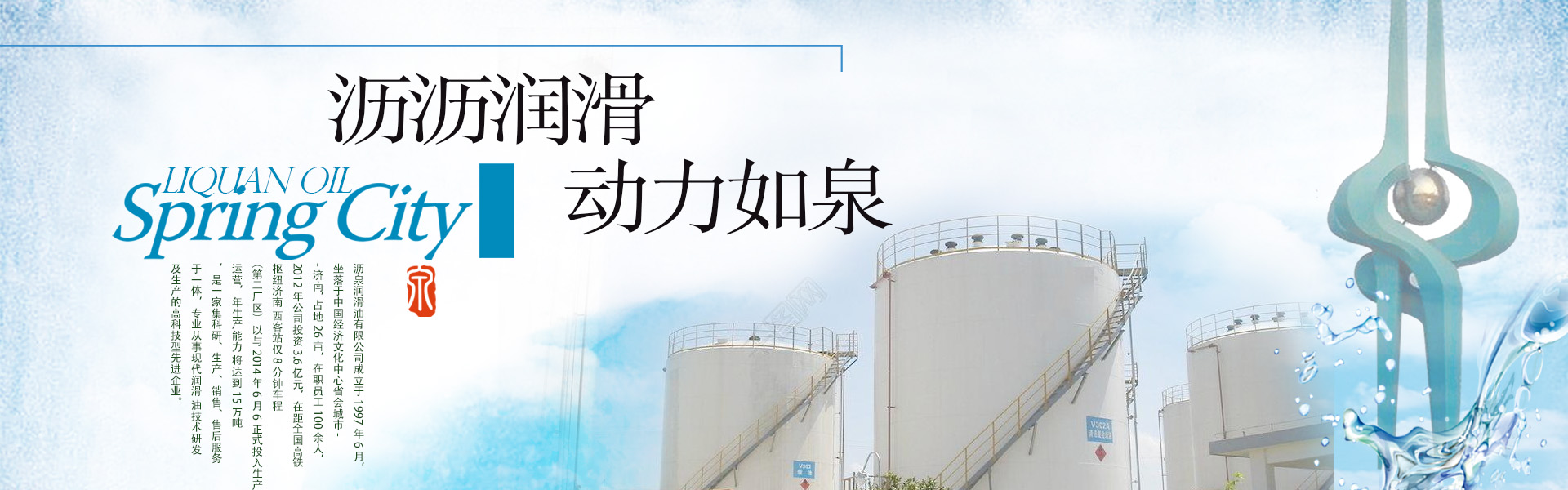 瀝泉潤滑油有限公司成立于1997年6月,坐落于中國經濟文化中心省會城市--濟南, 占地26畝,在職員工100余人,2012年公司投資3.6億元,在距全國高鐵樞紐濟南 西客站僅8分鐘車程(第二廠區(qū))以與2014年6月6正式投入生產運營,年生產能力 將達到15萬噸,是一家集生產、銷售、售后服務于一體,專業(yè)從事潤滑油生產的企業(yè)。 產品共有15大類,150多個品種,廣泛應用于汽車、工程機械、船舶、冶金、發(fā)電 機組、工業(yè)設備、軍工等領域。 公司產品已形成多系列、多品種、多規(guī)格的格局。并在30多個省市自治區(qū)建立400 多家代理商。經銷商8000多家,深受用戶好評! 在潤滑油行業(yè)領域展現著她傲人的身姿。公司秉承“以人品打造精品,以精品奉獻 客戶”的企業(yè)理念,引進國內外先進企業(yè)管理經驗和管理方法 公司簡介